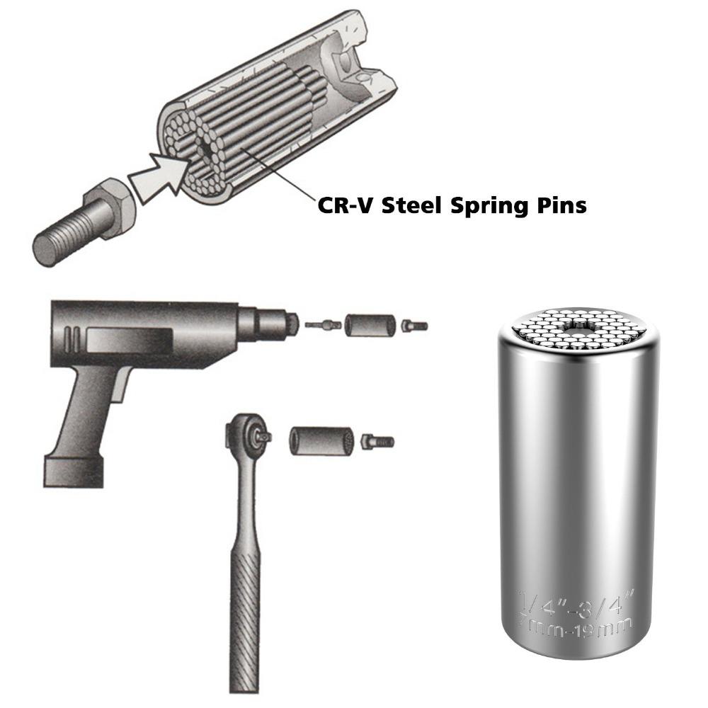 Are you a DIY kinda guy (or gal) Then our Magic Grip Tool is a MUST HAVE gadget for your tool arsenal! A universal socket that grips any shape. 54 steel pins automatically adjust to grip hex nuts, wing nuts, square nuts and even broken or rusted nuts!